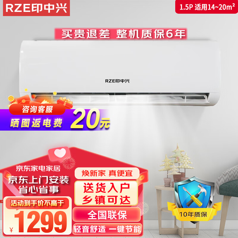 印中兴(RZE)1.5匹 单冷空调 挂机 出租房客厅卧室空调壁挂式 制冷省电降噪家用空调 KF-35GW/KXRAA-N5价格:1299.00元!