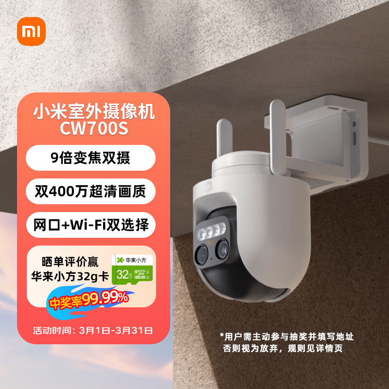 小米室外摄像机CW700S 家用监控 9倍变焦摄像头 双400万像素 全彩夜视 人/车形侦测 声光警报 双向语音价格:394.00元!