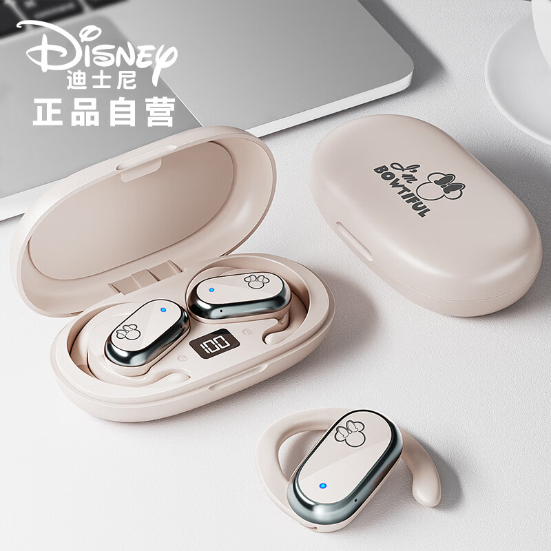 迪士尼(DISNEY)【六代全景音】蓝牙耳机 OWS气骨传导概念夹耳式 降噪超长续航防水挂耳式游戏音乐耳机 FW9云岩白价格:359.00元!