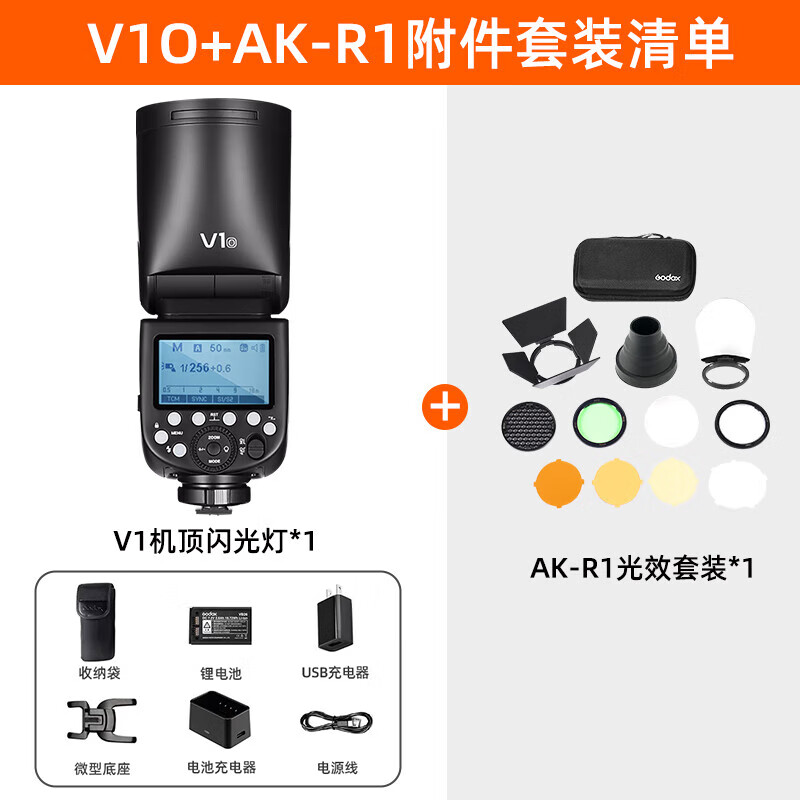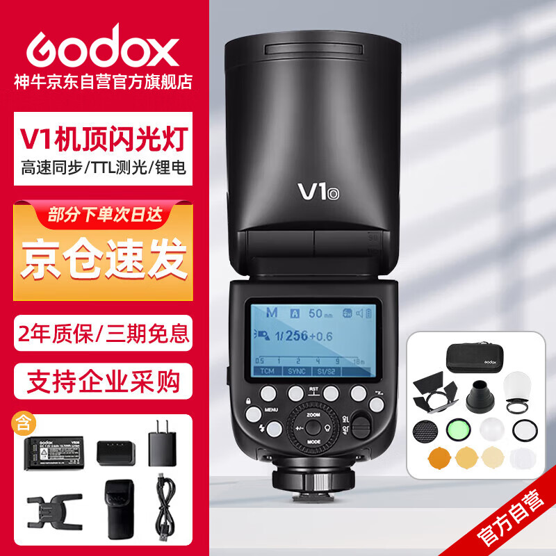 神牛V1机顶闪光灯单反相机外拍摄影补光灯户外人像高速同步TTL热靴闪光灯【V1+AKR1附件】 奥林/松下版价格:1660.00元!