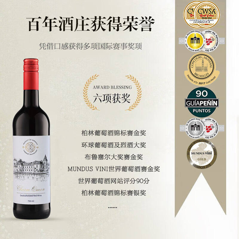 Ardeche无醇葡萄酒 婚宴送礼达颜无酒精真脱醇红酒应酬挡酒0度零度 珍藏升级脱醇6*750ml整箱价格:498.00元!