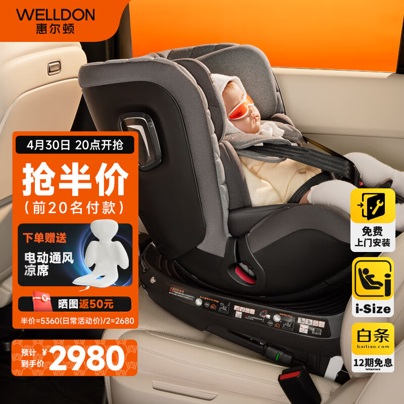 惠尔顿(Welldon)儿童座椅 0-7岁 360度旋转 i-Size认证 四大智能监测 智转PRO价格:2980.00元!