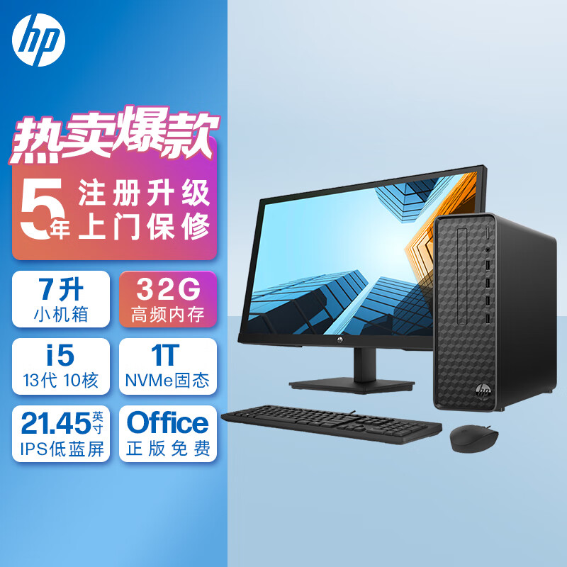 惠普HP 星Box商务办公台式电脑主机(13代酷睿i5-13400 32G 1TB固态硬盘 WiFi 注册五年上门)+21.45英寸价格:4299.00元!