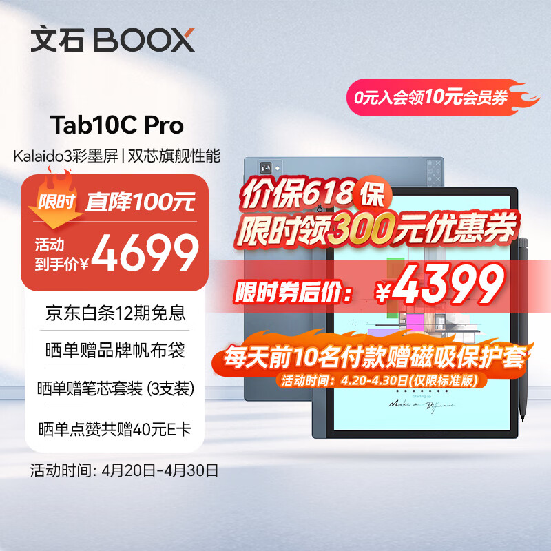 BOOX文石 Tab10C Pro10.3英寸彩色墨水屏电子书阅读器 智能办公本 大屏电纸书电子纸高刷 语音转文字价格:4699.00元!