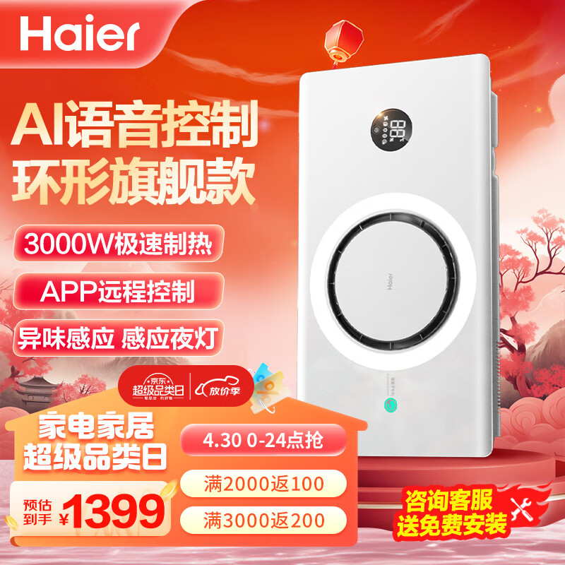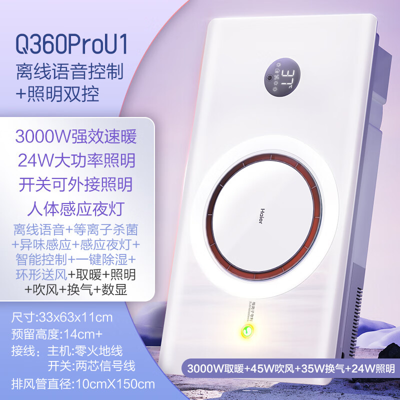 海尔风暖浴霸Q360proU1速热环形智能离线语音等离子除菌可外接照明价格:1699.00元!