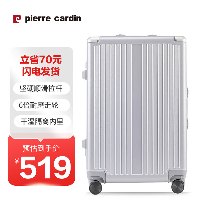 皮尔卡丹行李箱男铝框28英寸万向轮拉杆箱大容量旅行箱密码箱女商务皮箱子价格:589.00元!