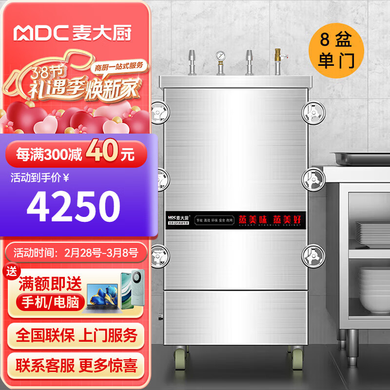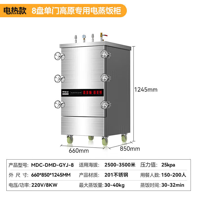 麦大厨 高原蒸箱蒸饭柜商用蒸包炉蒸馒头蒸饭车食堂酒店饭店厨房加厚发泡8盘电热 MDC-DMD-GYJ-8价格:4890.00元!
