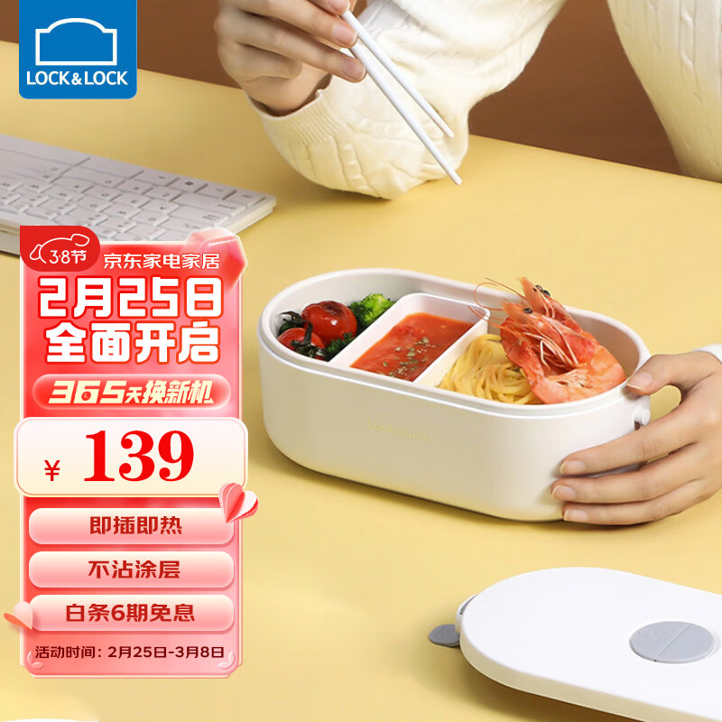 乐扣乐扣(LOCK&LOCK)加热饭盒免注水电热饭盒保温饭盒加热可插电上班便携自热饭盒EJR219 白色 0.7L价格:209.00元!