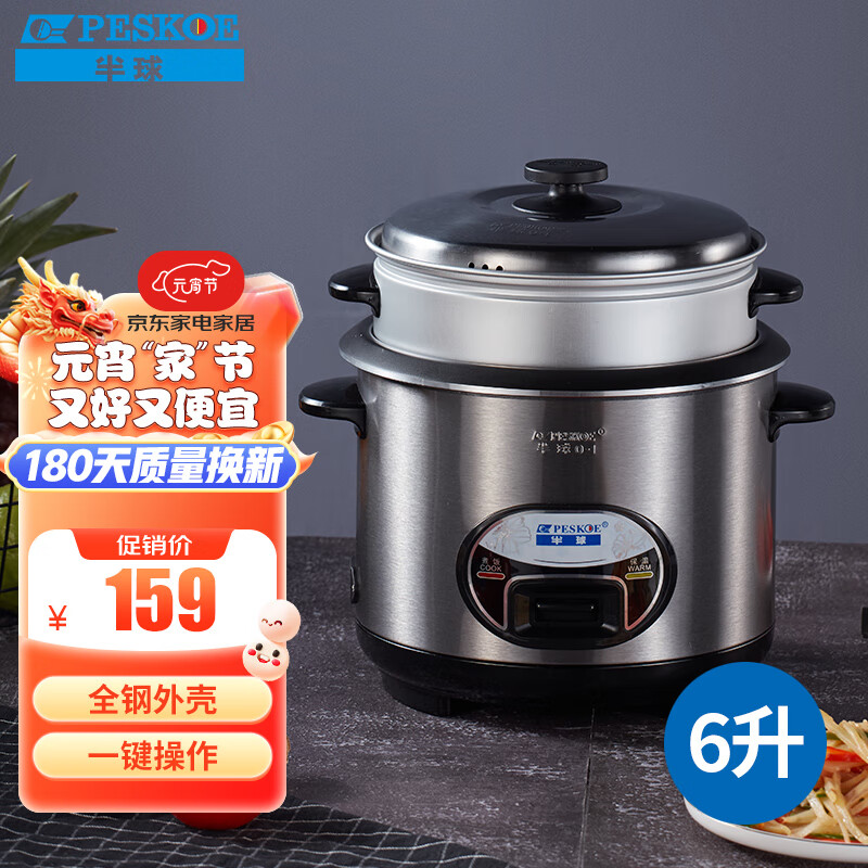 半球 电饭锅 家用电饭煲 直身带蒸笼电饭锅 全钢外壳电饭锅 6升容量/FJ60-H 6L价格:169.00元!
