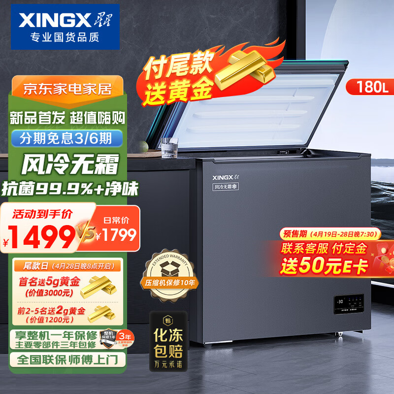 星星(XINGX)180升家用商用风冷无霜茶叶保鲜冰柜 冷藏冷冻转换卧式冷柜 电脑控温节能顶开门冰箱BD/BC-180WKA价格:1499.00元!