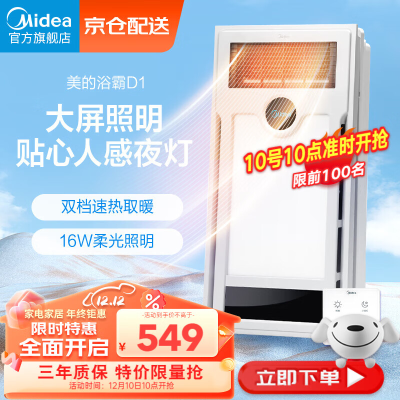 1、美的安装也方便,专门有师傅来装,很靠谱的。也可自己安装,风暖对眼睛好,灯光亮堂又不刺眼,比灯暖的好,也不用总是要更换灯泡,方便很多。有需要还会再买美的的其他产品。十合一功能多,尤其是干燥功能很实用,灯光也很亮堂。