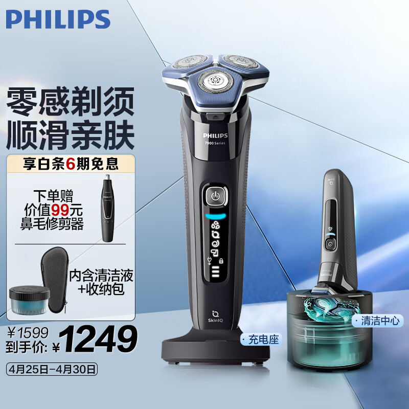 飞利浦(PHILIPS)电动剃须刀蜂巢7系Pro+ SkinIQ高端智能肌能感应刮胡刀 生日礼物 送男友 送老公价格:1249.00元!