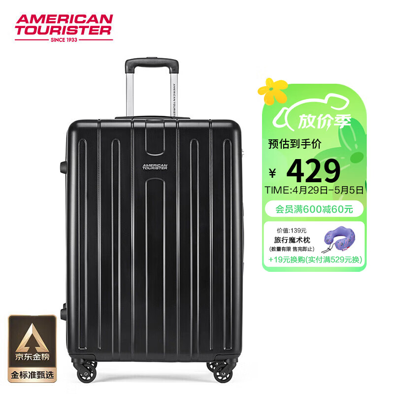 美旅箱包时尚条纹行李箱男女大学生旅行箱大容量拉杆箱TC3黑色24英寸价格:529.00元!