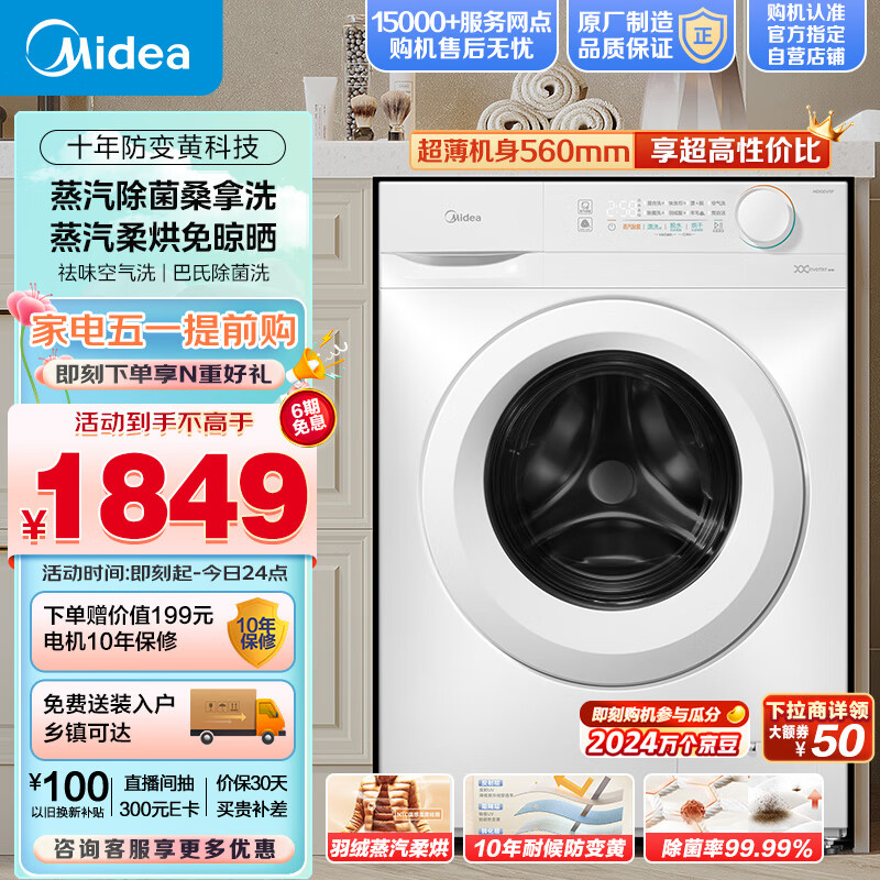 美的(Midea)滚筒洗衣机全自动 11F 洗衣机带烘干洗烘一体机 巴氏除菌洗 蒸汽柔烘 MD100V11F 简尚系列 10公斤价格:1899.00元!