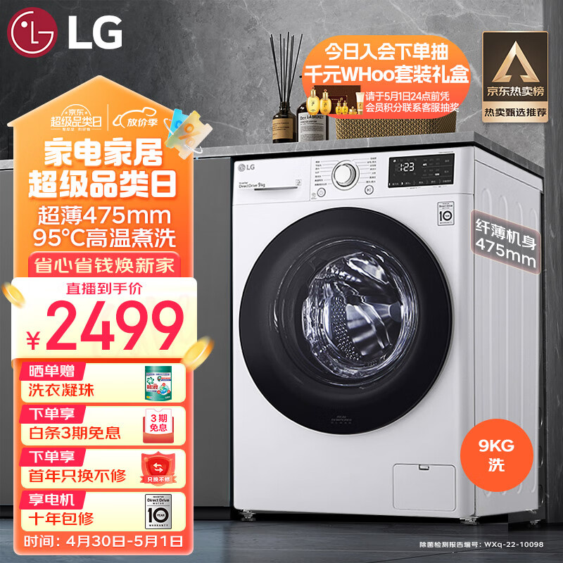 LG9KG超薄滚筒全自动洗衣机 475mm超薄机身 AI直驱变频 自动脱水 95℃高温洗 白 FCY90N2W价格:3019.00元!