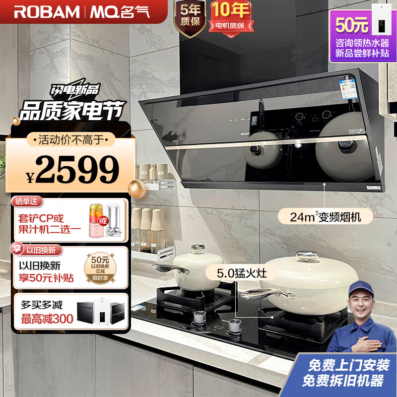 名气(MQ)老板抽油烟机侧吸变频超薄近吸家用小尺寸S1烟灶套装24大吸力960Pa静压燃气灶天然气A3801+B510A价格:2599.00元!