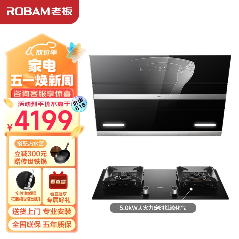 老板(Robam)抽油烟机烟灶套装免拆洗静音侧吸油烟机21风量燃气灶家用吸油烟机灶具27A3H+57B8A液化气价格:4199.00元!