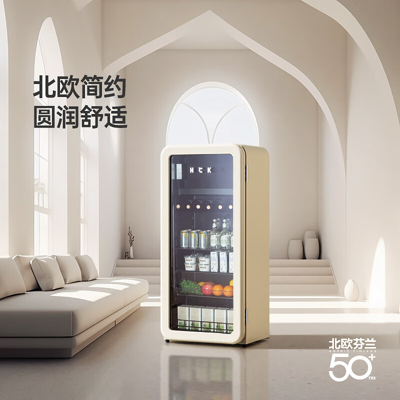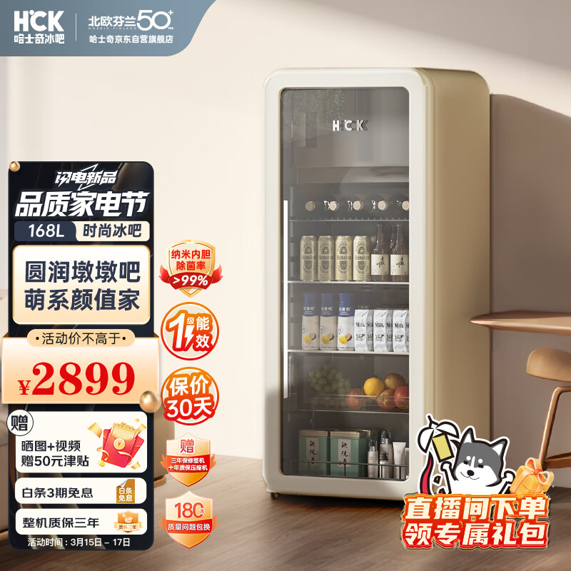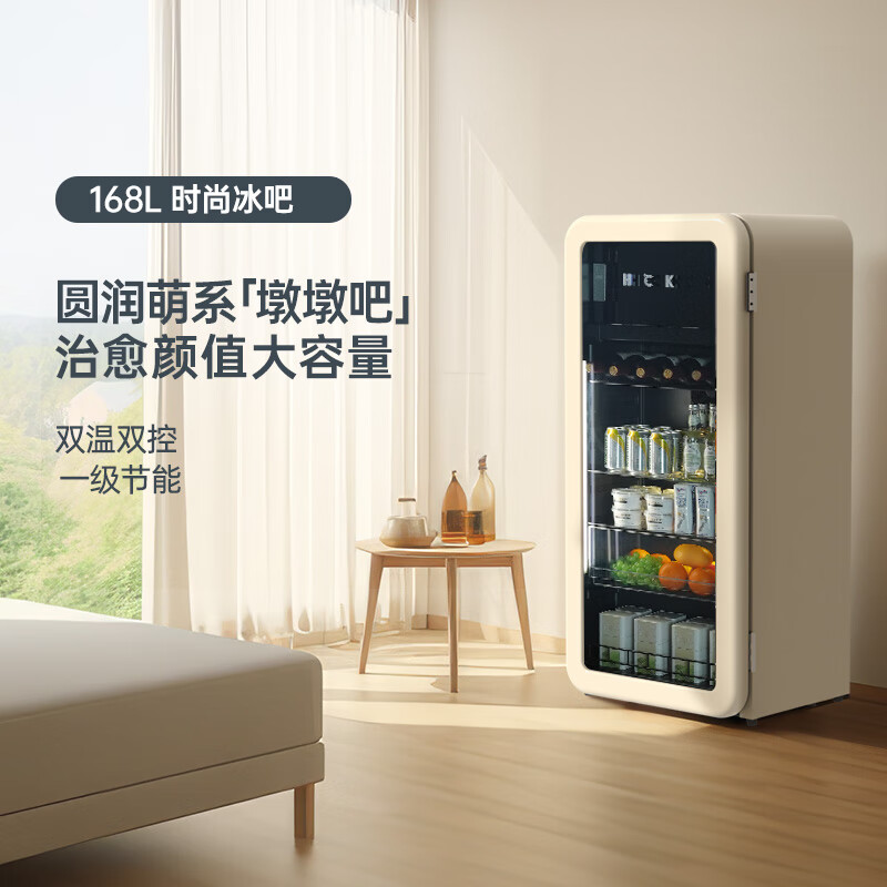 哈士奇客厅冰箱家用复古冷藏冷冻保鲜柜冰吧恒温立式酒饮节能展示柜墩墩吧168升SC-168RD-S 奶茶色价格:2899.00元!