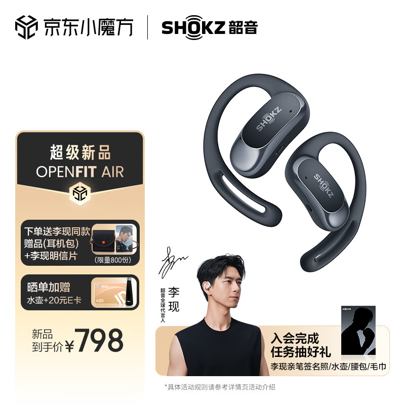 韶音(SHOKZ)【李现同款】OpenFit Air开放式蓝牙耳机不入耳非骨传导运动跑步长续航通话降噪适用苹果华为T511 玄武黑价格:798.00元!