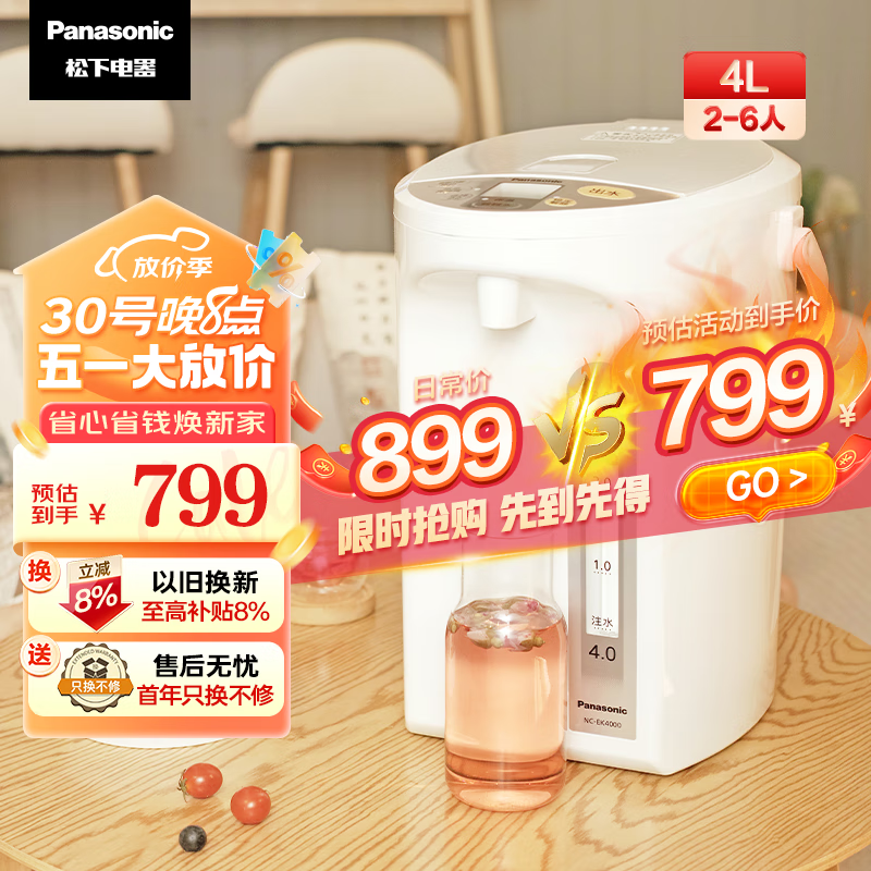 松下(Panasonic)电水壶 电热水瓶 可预约 食品级涂层内胆 全自动智能保温烧水壶 以旧换新 NC-EK4000价格:799.00元!