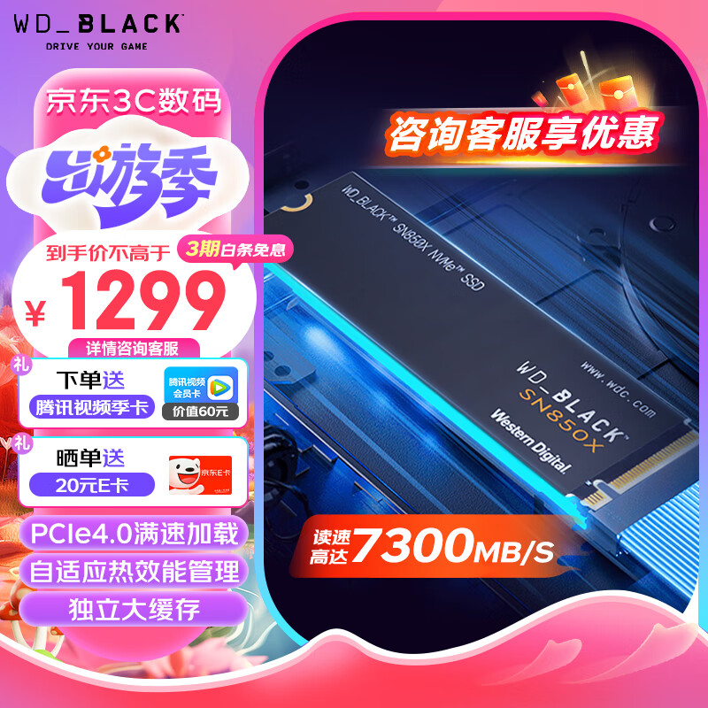 西部数据(WD)2TB大容量 笔记本SSD固态硬盘 M.2 SN850X PCIe4.0 2280 NVMe AI电脑配件 游戏电竞电脑扩展价格:1299.00元!