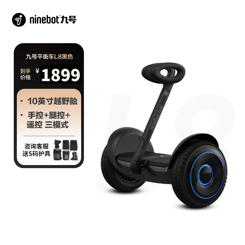 Ninebot 九号平衡车成人L8 多模式操控10英寸越野轮胎 9号电动车体感车平衡车电动黑色价格:1899.00元!