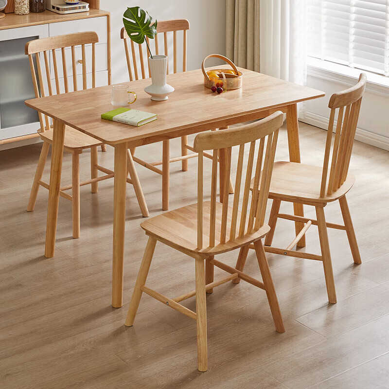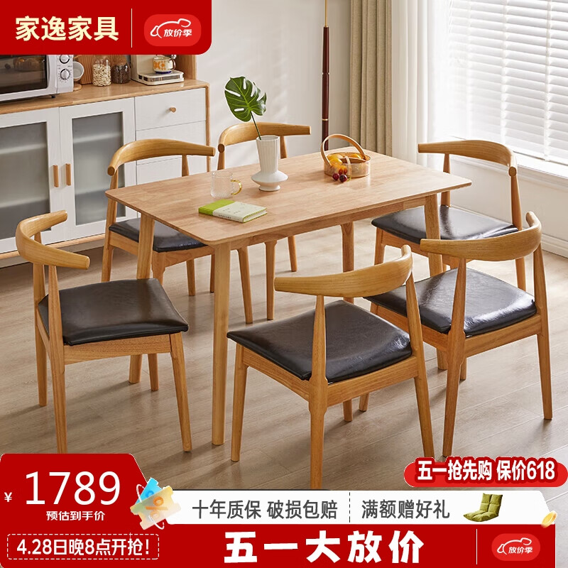 家逸实木餐桌现代简约餐桌椅组合家用吃饭桌子餐厅家具方形1.4米+6椅价格:2139.00元!
