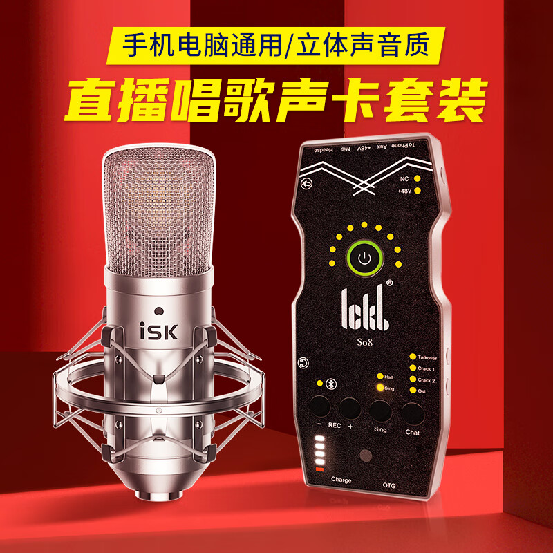 Ickb so8第五代+isk BM-800声卡套装手机电脑抖音主播唱歌k歌录音直播设备全套电容麦克风快手话筒价格:1550.00元!