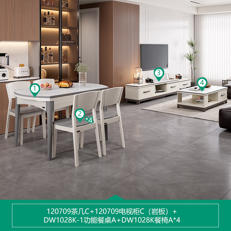 全友家居 现代岩板客餐厅7件套装120709茶几电视柜DW1028一桌四椅组合价格:6282.86元!