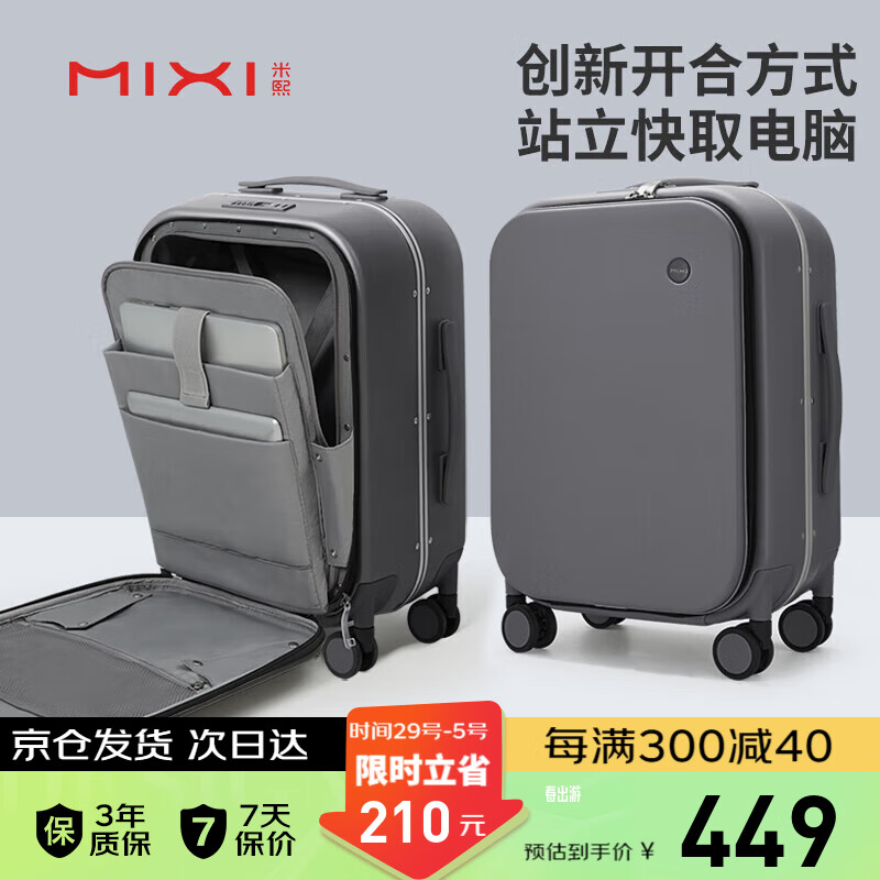 米熙前开盖拉杆箱子行李箱大容量登机箱铝框箱男旅行箱20英寸矿岩灰60价格:659.00元!