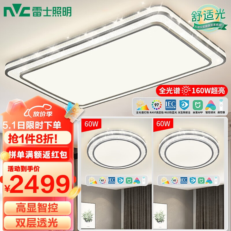 雷士(NVC)led吸顶灯轻奢风大尺寸客厅灯大瓦数高亮米家智能护眼晶宏D舒适光价格:3123.00元!