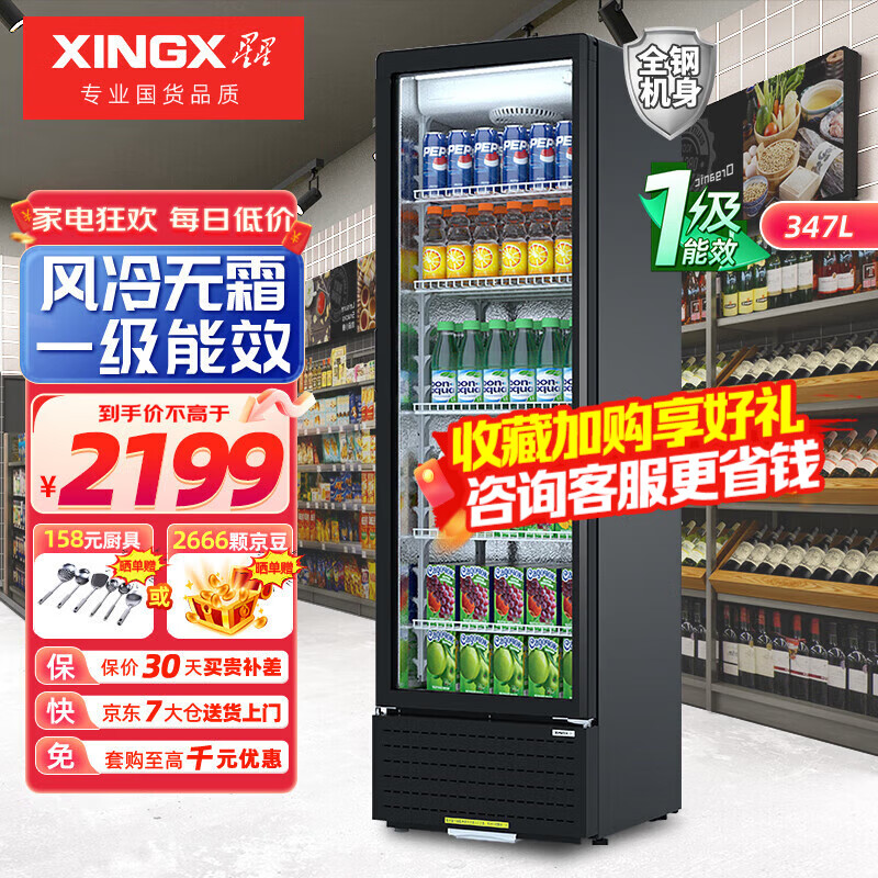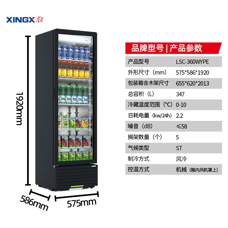 星星(XINGX)展示柜冷藏保鲜柜饮料展示柜单门商用立式冰柜1级能效超市便利店陈列柜啤酒水果柜 风冷丨1级能效丨347L丨360WYPE价格:2199.00元!