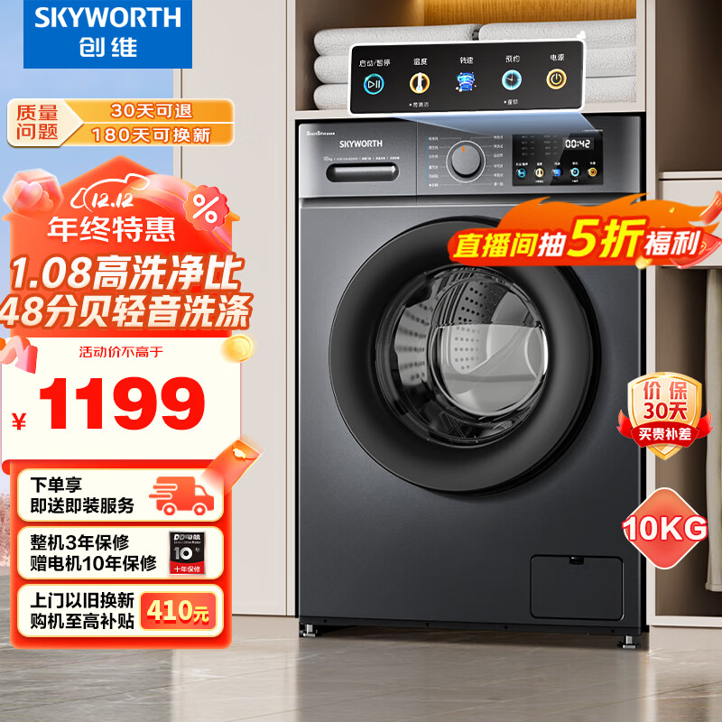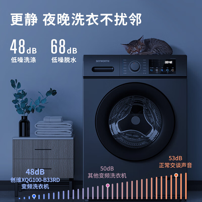 创维(SKYWORTH) 10公斤滚筒洗衣机全自动 变频低噪 大容量家用 超薄可嵌入 可速洗XQG100-B33RD价格:1199.00元!