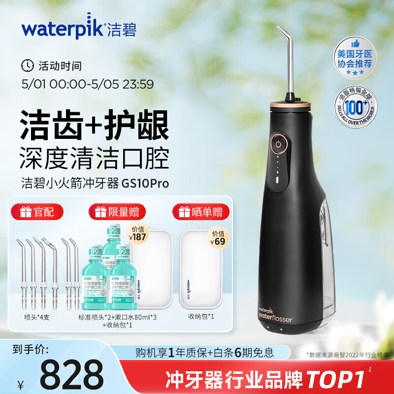 洁碧(Waterpik)冲牙器便携式电动洗牙器水牙线洁牙器家用立式预防牙结石全身水洗【小火箭】夜空黑 礼物价格:1027.00元!