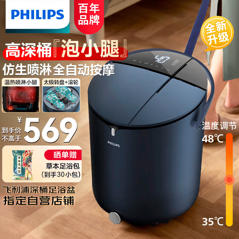 飞利浦(PHILIPS)泡脚桶 泡脚盆加热全自动按摩足浴盆智能恒温加热洗脚盆 生日礼物母亲节礼物送妈妈 3302F价格:649.00元!