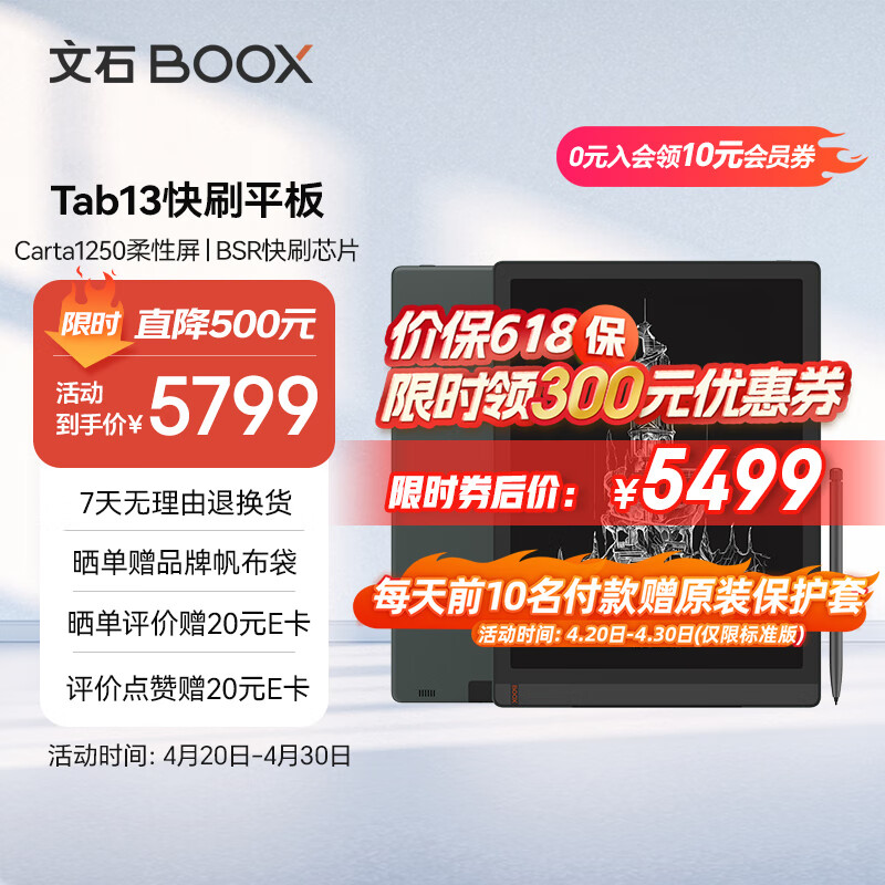 BOOX文石 Tab13 13.3英寸大屏电子书阅读器 墨水屏电纸书电子纸办公本 快刷平板 语音转文字 6+128G价格:5799.00元!