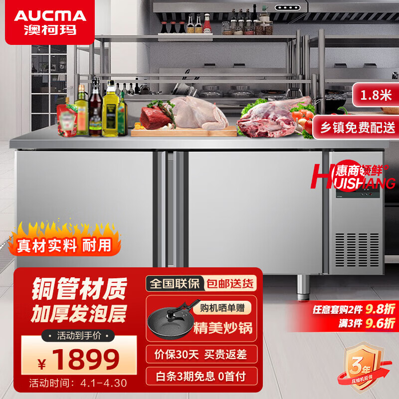 澳柯玛(AUCMA)冷藏工作台冰柜商用冷藏工作台操作台卧式冰箱奶茶设备平冷水吧台厨房冰箱冷柜 1.8米丨冷藏丨HC-18A8J价格:1819.00元!