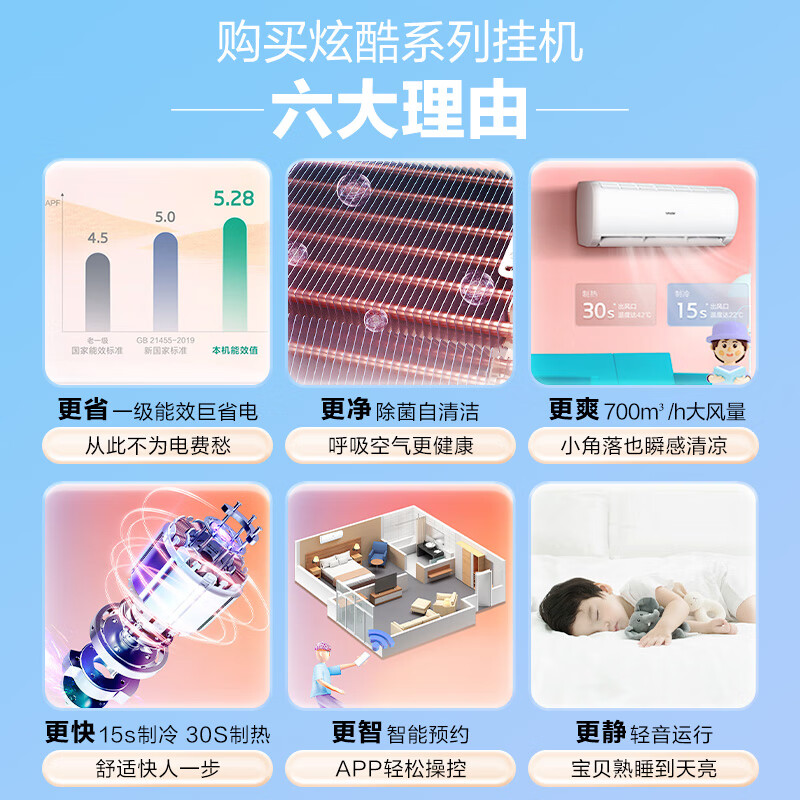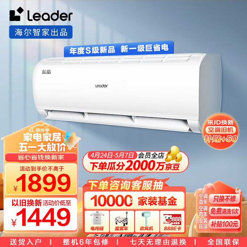 Leader 海尔智家出品 炫酷 小1.5匹挂机 新一级能效 变频自清洁大风量 KFR-32GW/02XCA81TU1价格:1899.00元!