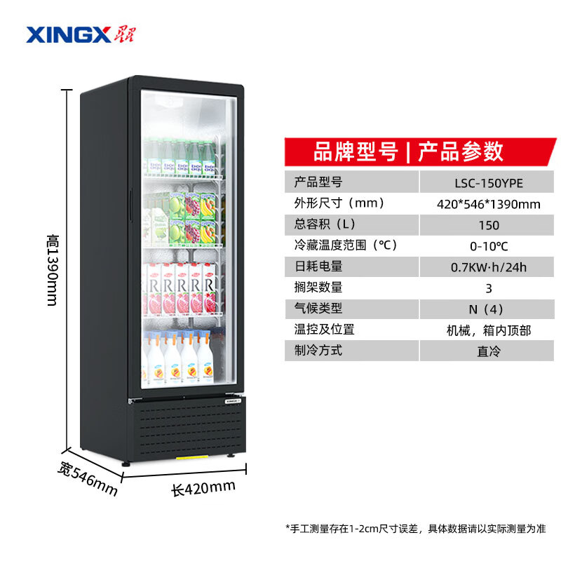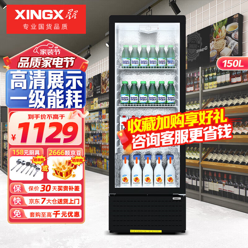 星星(XINGX)展示柜冷藏保鲜柜饮料展示柜单门商用立式冰柜1级能效超市便利店陈列柜啤酒水果柜 直冷丨1级能效丨150L丨150YPE价格:1129.00元!