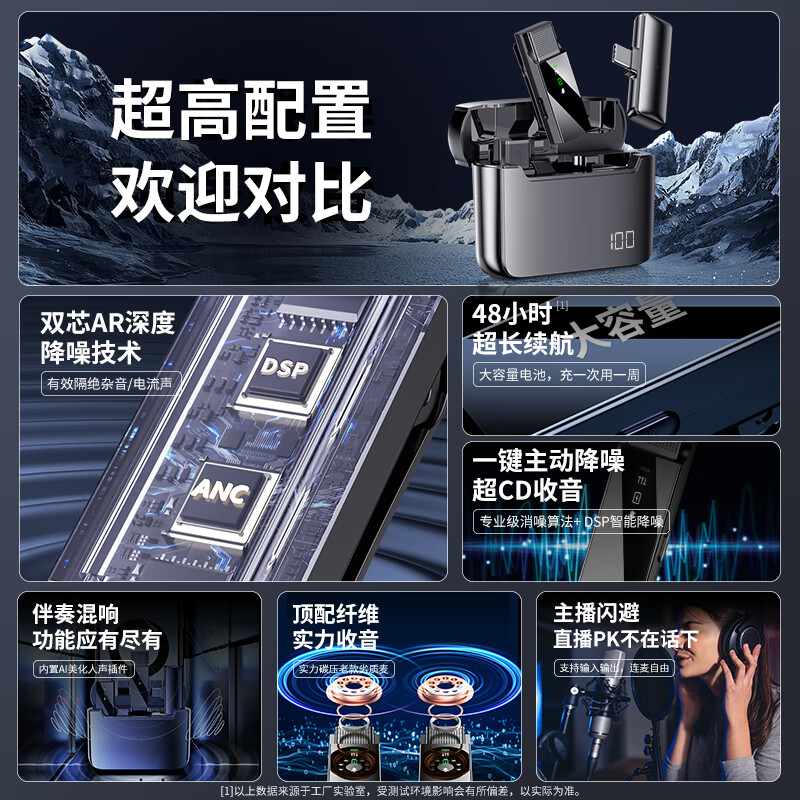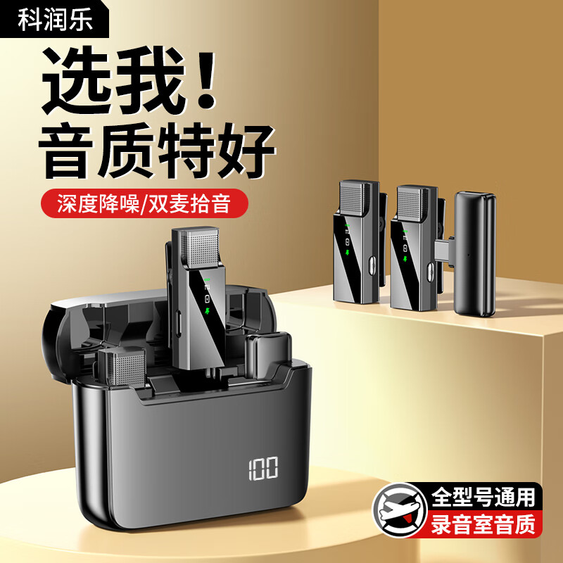 科润乐无线领夹麦克风收音麦吃播直播录音设备手机电脑相机抖音户外短视频专业降噪K歌话筒一拖二带仓价格:184.00元!