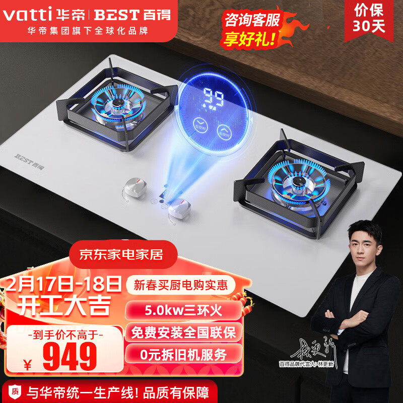 百得(BEST)华帝出品燃气灶液化气家用厨房 煤气灶双灶炉具5.0KW双边定时灶 一级能效熄火保护灶具 QE72液化气价格:1049.00元!