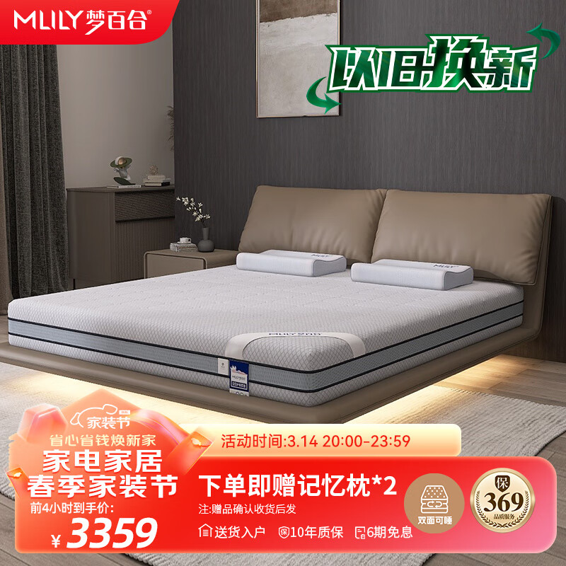梦百合床垫 朗怡0压厚垫 软硬两用记忆棉弹簧床垫可定制 180*200*21cm价格:4599.00元!