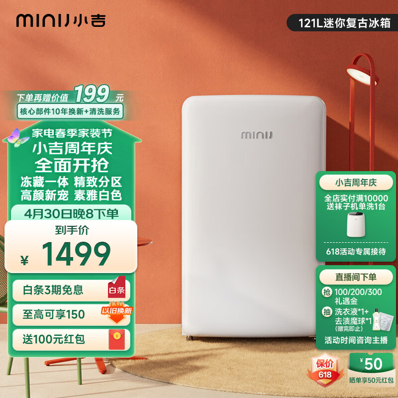 小吉(MINIJ)迷你复古小冰箱 客厅冰箱单门冰箱小型家用冷冻冷藏一体节能电冰箱礼物 121L BC-121C价格:1499.00元!