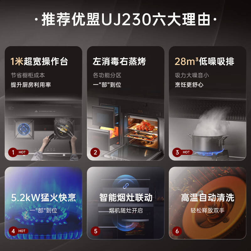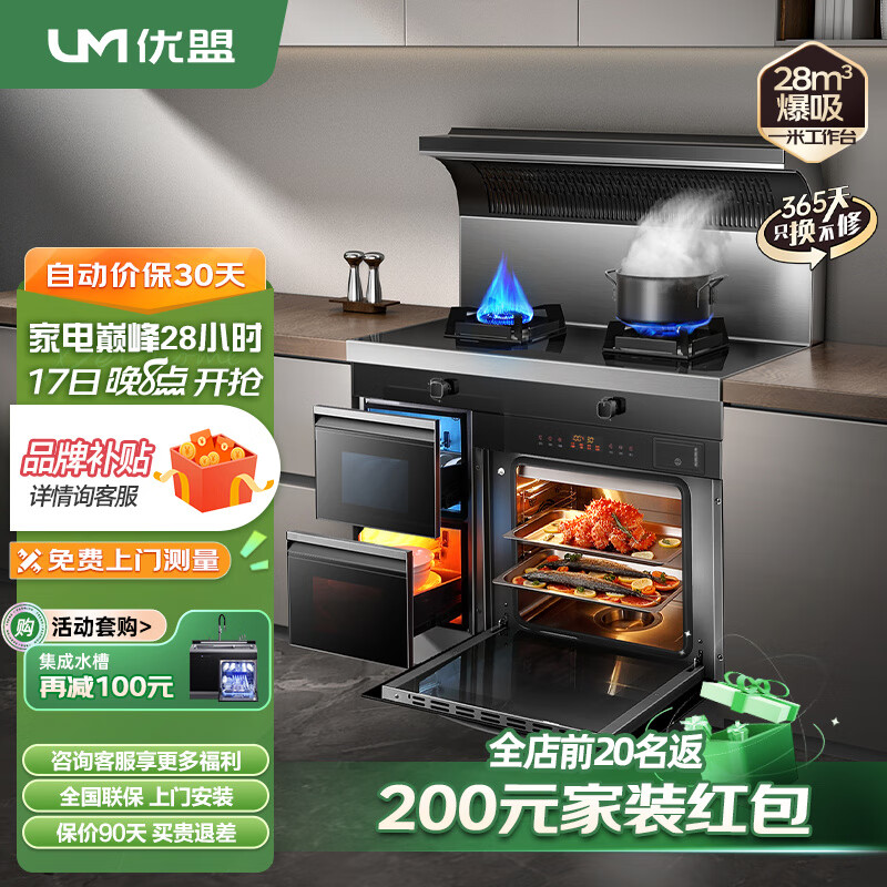 优盟(UM)集成灶蒸烤一体集成灶一体灶 蒸箱烤箱一体式 蒸烤箱一体机独立保洁柜 抽油烟机套装UJ230(天然气)价格:4253.00元!