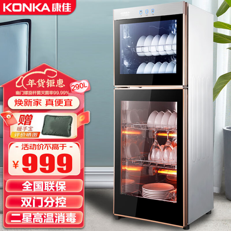 康佳(KONKA)消毒柜立式消毒碗柜商用家用臭氧高温二大容量餐具消毒柜双门分控ZTP380K9价格:1089.00元!