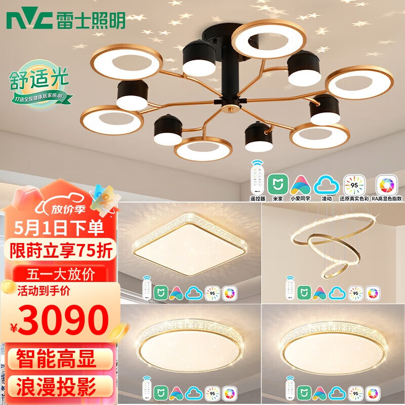 雷士(NVC)北欧吊灯星空投影客厅灯现代智能高显舒适光大瓦数WHXD80Z/F-03价格:4120.00元!
