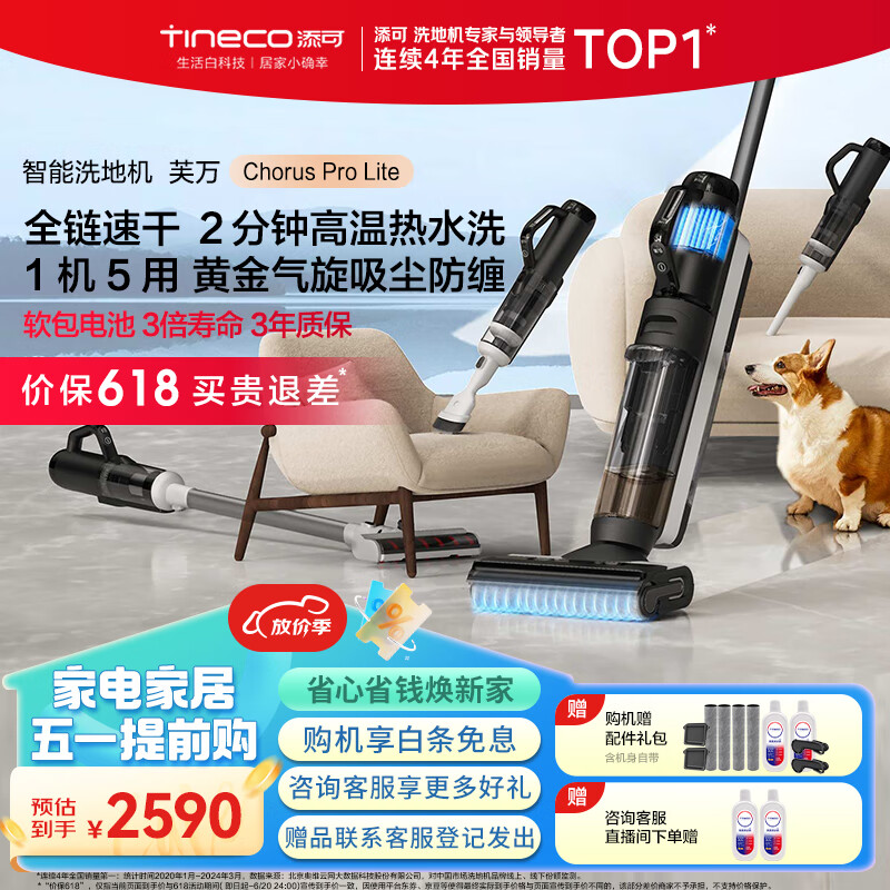 添可(TINECO)无线智能洗地机芙万Chorus Pro Lite 高温全链极速干全屋清洁多合一扫拖一体家用吸尘器价格:2690.00元!