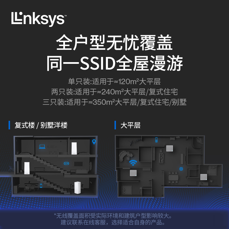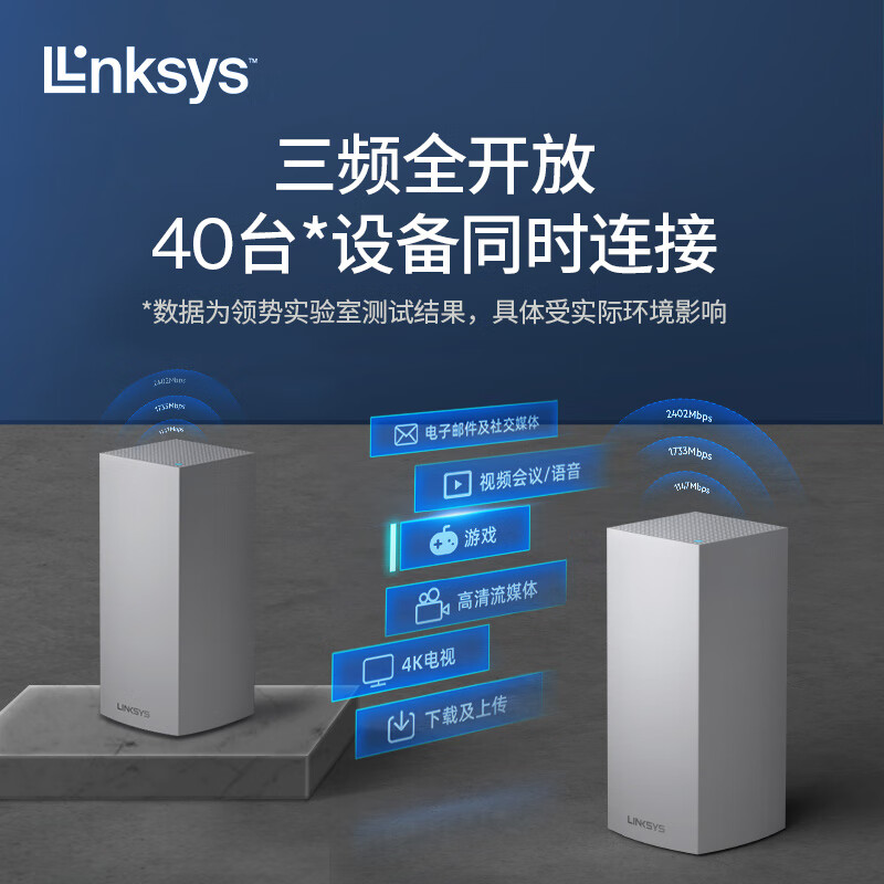 领势(linksys) MX8400路由器穿墙王ax8400千兆WiFi6家用无线路由器三频mesh组网套装【MX4200两支装】价格:1699.00元!