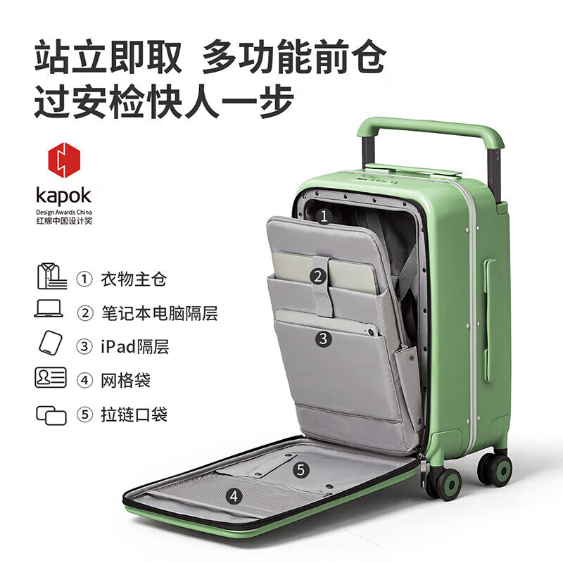 米熙前开盖铝框拉杆箱子行李箱大容量密码箱女旅行箱24英寸牛油果绿75价格:799.00元!