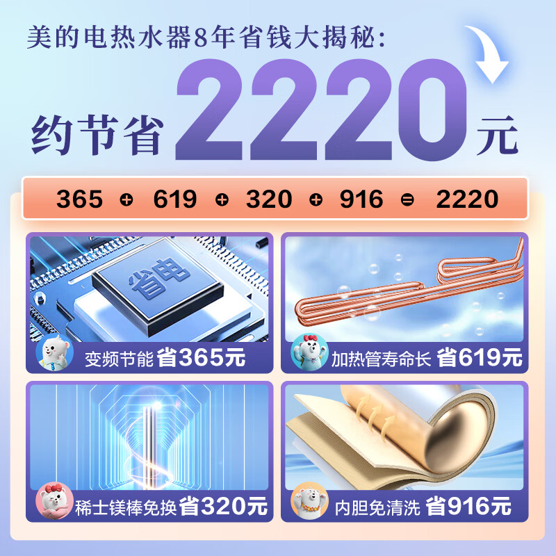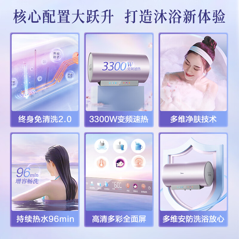 美的(Midea)免清洗电热水器60升家用 3300W变频 出水断电 镁棒免更换 阻垢 一级能效 储水式F6033-JE8(HE)价格:1549.00元!